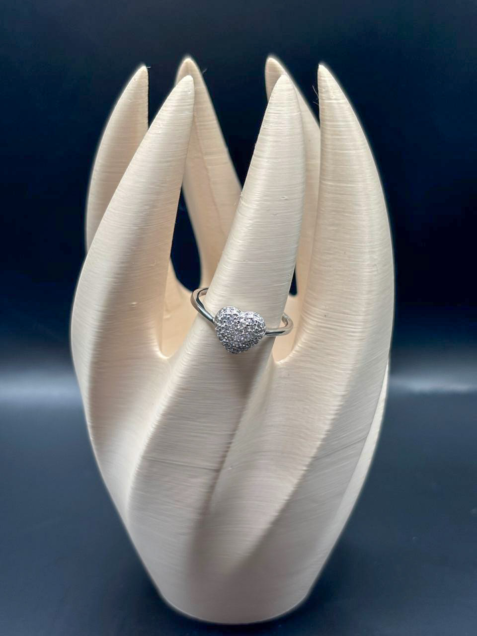 Anel Coração Micro Zircônia Confeccionado em Banho de Ródio Branco.