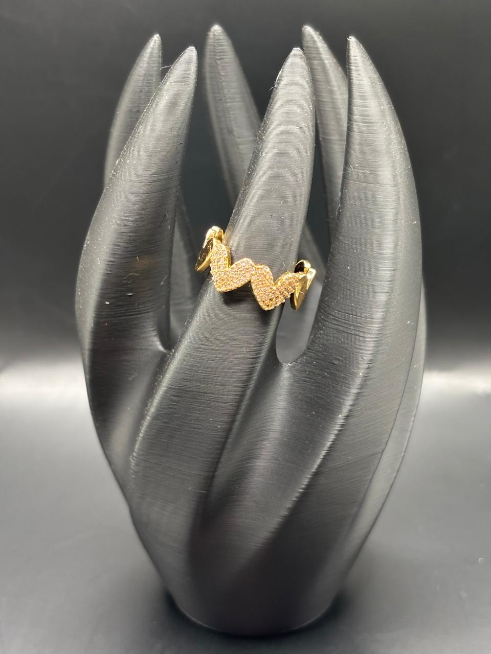 Anel Corações Micro Zircônia Confeccionado em Banho de Ouro Amarelo 18k.