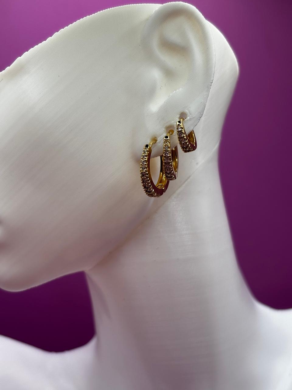 Brinco Trio Ponto de Luz Cristal Dourado – (Código do produto L56Ex)