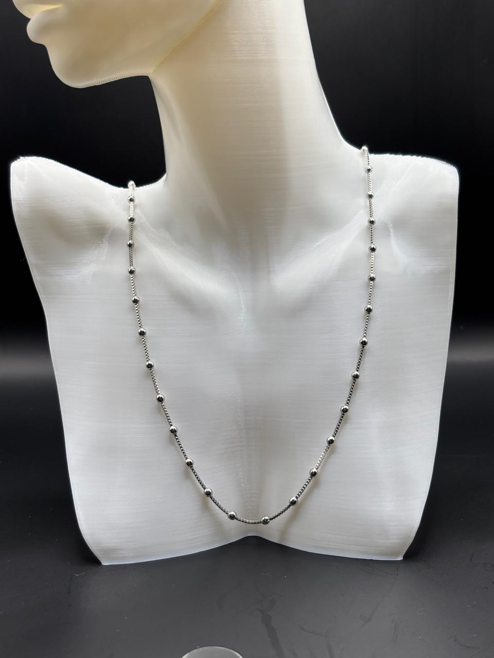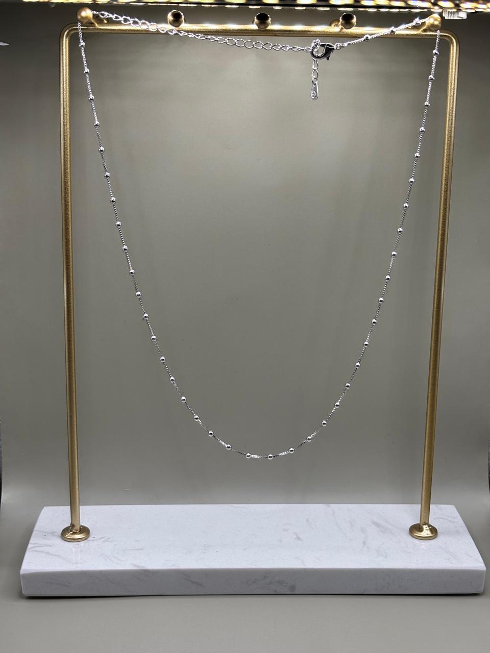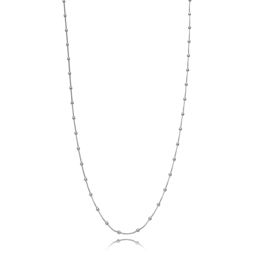 Colar Bolas Lisas Confeccionado em Banho de Ródio Branco.